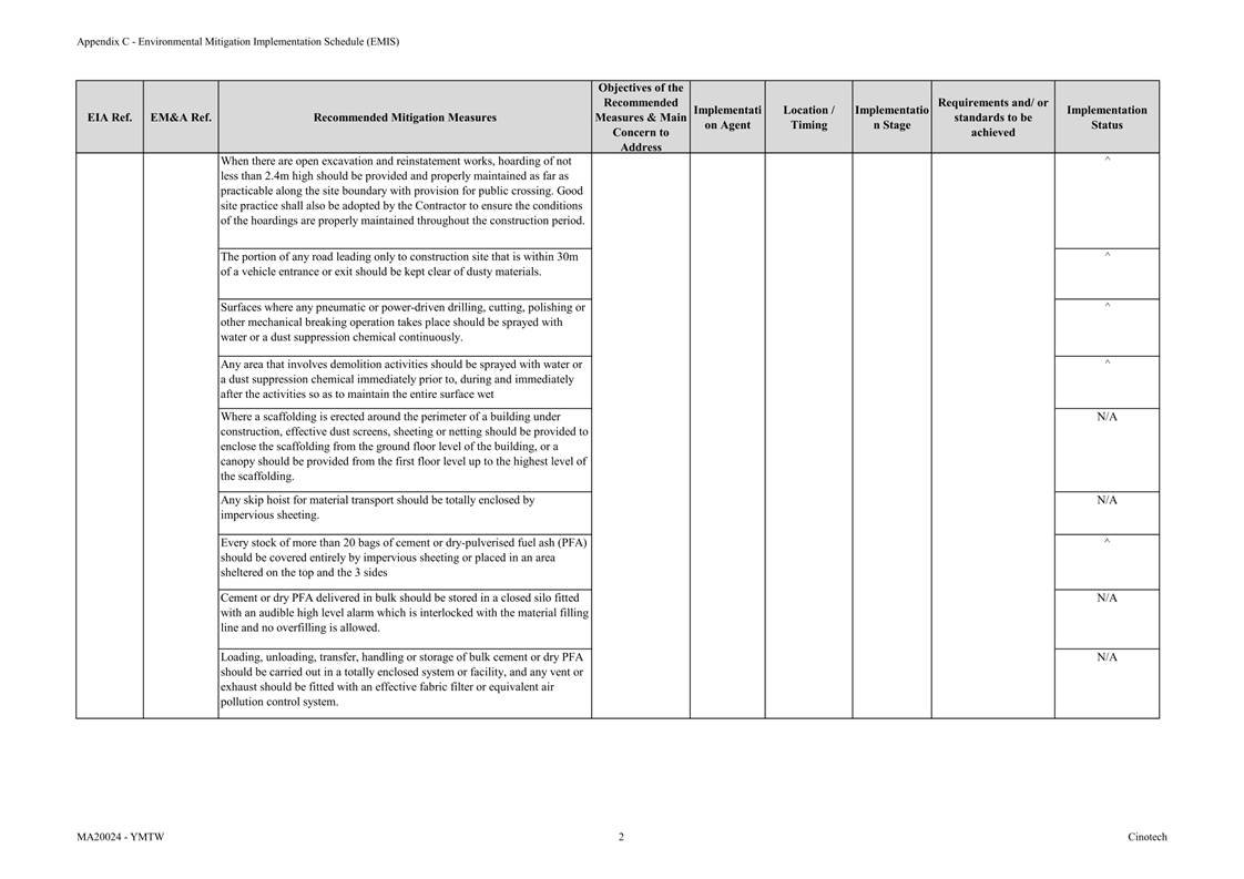 · APCO · To control the dust impact to meet HKAQO and TM-EIA criteria |