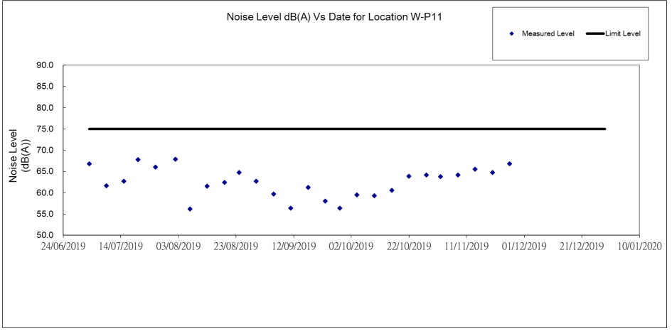 A.11 No exceedance of the Action and Limit Levels of 24-hour TSP, 1-hour TSP and construction noise monitoring were recorded during the reporting month.