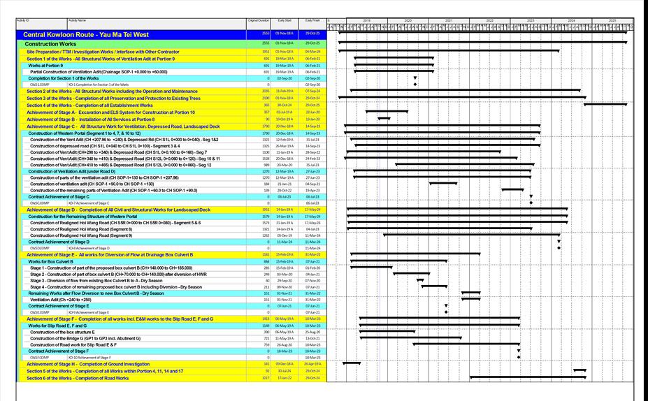 · Tree Felling at Portion 1B, 1E · Socket H-Pile at Portion 1B, 1D, 1E and 1F · Bored Piling Works at Portion 1E · Reinforced concrete (RC) works at Box Culvert Ch 150-190 at Portion 1G · Activities for Widening Road Lai Cheung Road at Portion 1D · D-Wall Construction at Portion 1F · Pipe pilling works for Vent Adit Construction Ch 0-60 at Portion 9 · Preparation works prior to U/G Watermain Installation at Portion 8 |