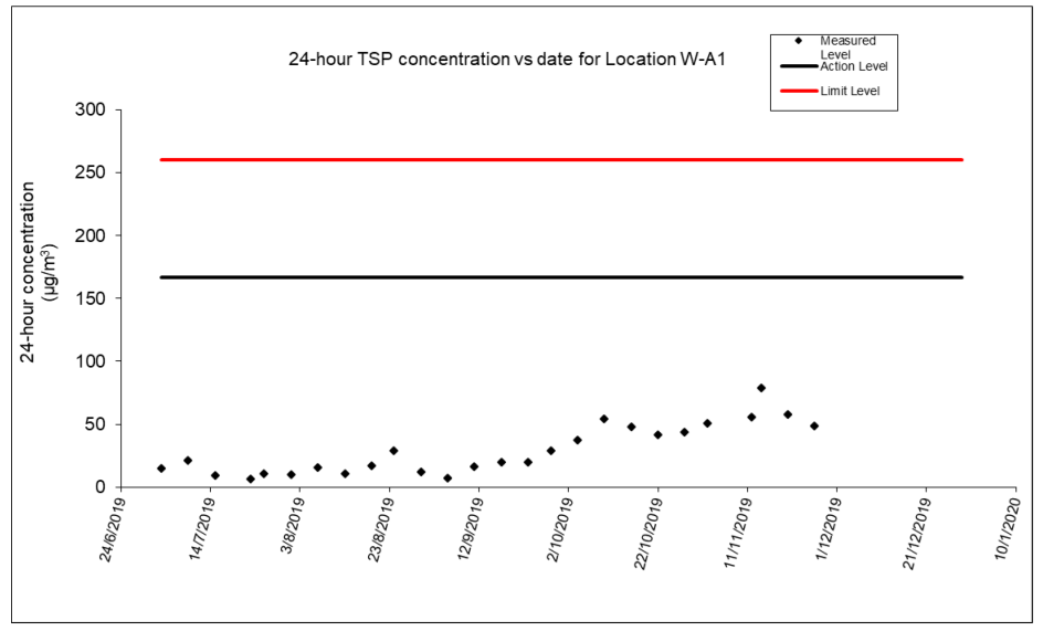 A.12 No exceedance of the Action and Limit Levels of 24-hour TSP and 1-hour TSP monitoring were recorded during the reporting period.