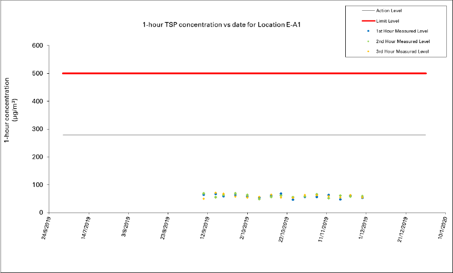 Figure 1: Graphical Illustration of Measured 1-hour TSP (μg/m3) Levels at E-A1