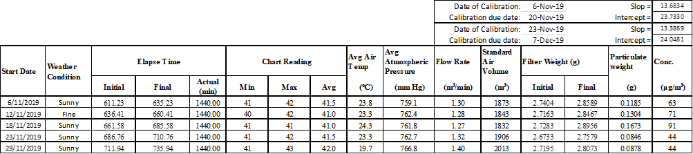 Figure 2: Graphical Illustration of Measured 24-hour TSP (μg/m3) Levels at E-A1