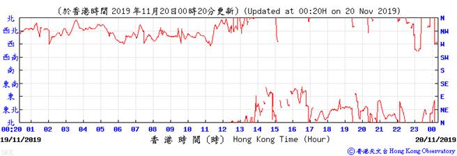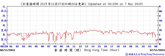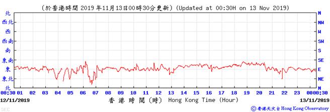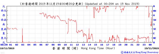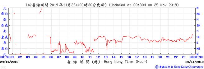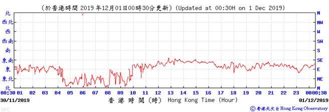 Wind direction data for 6, 7, 12, 13, 18, 19, 23, 24, 29, 30 November 2019