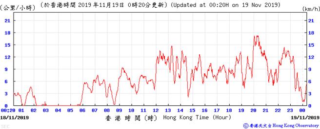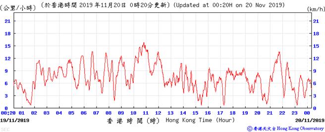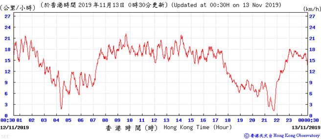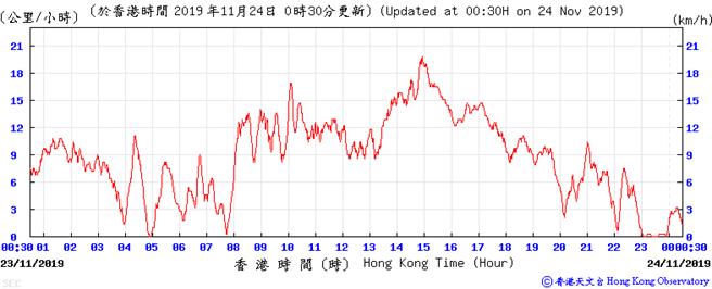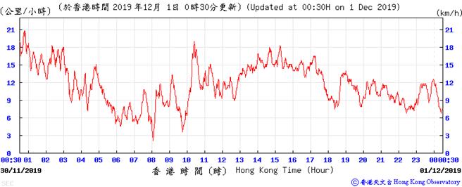 Wind speed data for 6, 7, 12, 13, 18, 19, 23, 24, 29, 30 November 2019