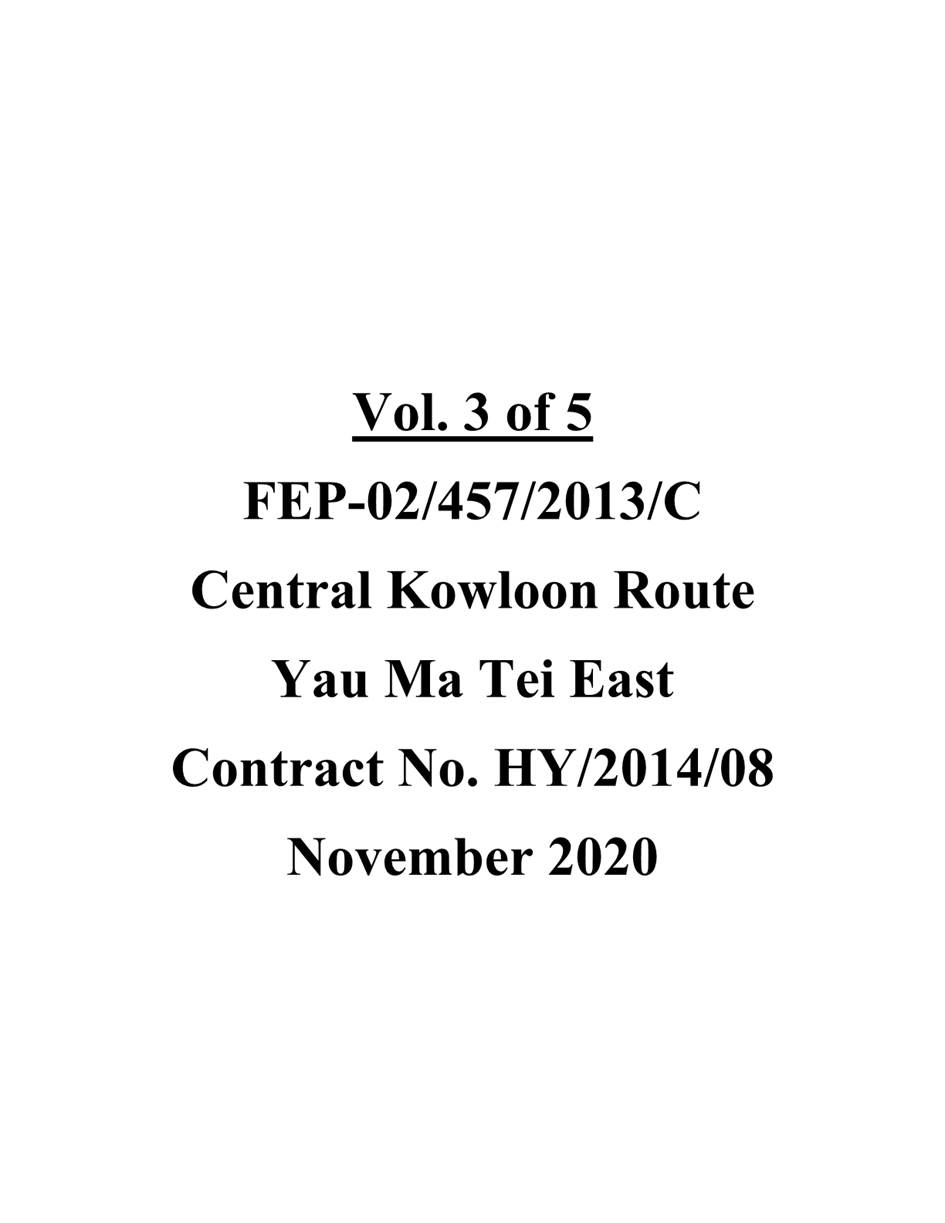 1.2. The Central Kowloon Route – Design and Construction Environmental Impact Assessment Report (Register No.: AEIAR-171/2013) was approved with conditions by the Environmental Protection Department (EPD) on 11 July 2013. An Environmental Permit (EP 457/2013) was issued on 9 August 2013. Variations of EP (VEP) was subsequently applied for and the latest EP (EP-457/2013/C) was issued by EPD on 16 January 2017. A Further EP (FEP-02/457/2013/C) was issued by EPD on 5 March 2018.