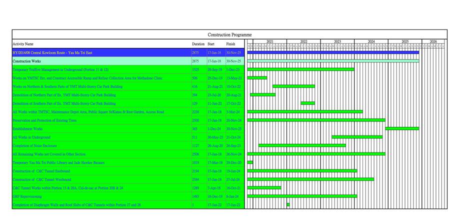 1.3. The construction of the CKR had been divided into different sections. This Contract No. HY/2014/08 – Section of Yau Ma Tei East (YMTE) covers part of the construction activities located at Yau Ma Tei under the EP and FEP which includes: