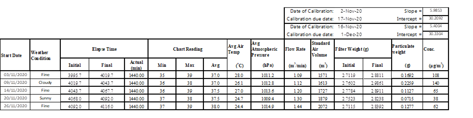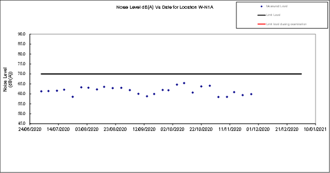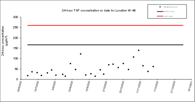 A.7 One Action Level of construction noise was triggered during the reporting period as there was one documented complaint received on 14 November 2020 related to construction noise and dust at Prosperous Garden. No exceedance of Limit Level of construction noise was recorded in the reporting month. No exceedance of the Action Level and Limit Levels of 24-hour TSP and 1-hour TSP was recorded during the reporting month.