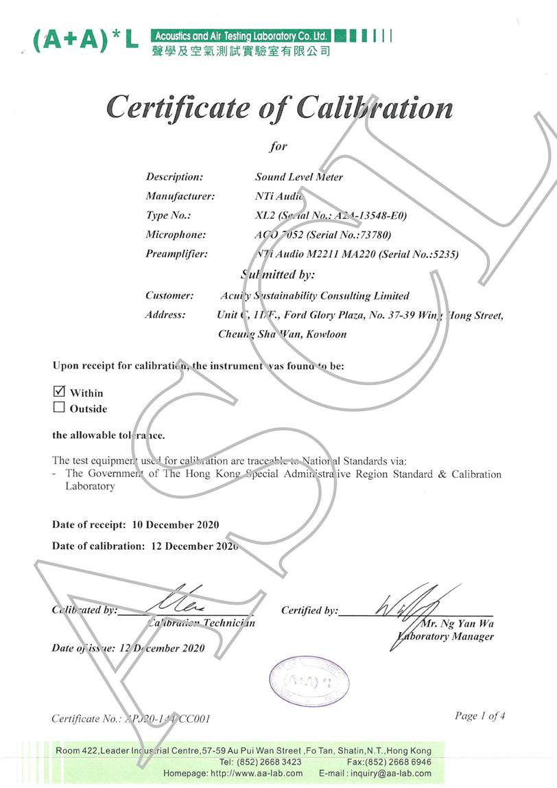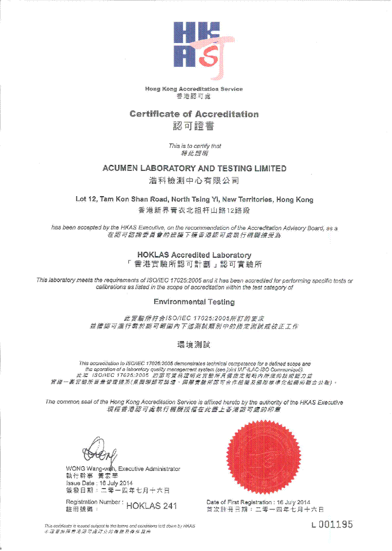 J. The Certification of Laboratory with HOKLAS Accredited Analytical Tests
