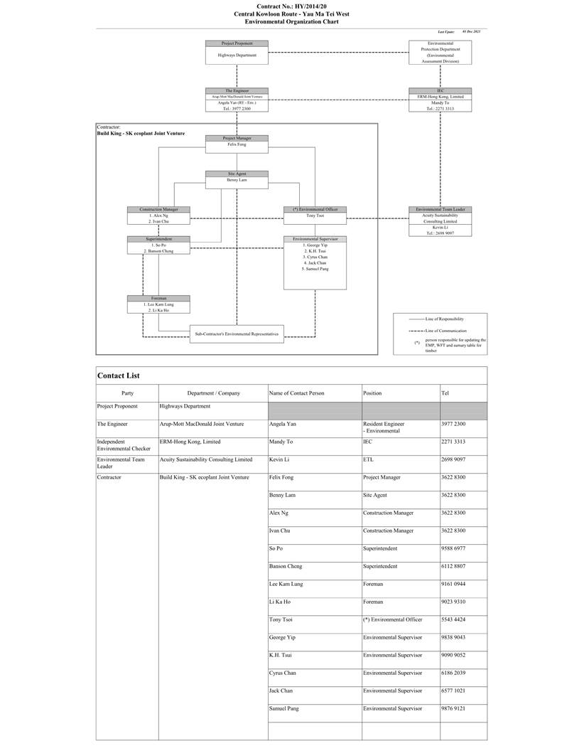 1.3. The construction of the CKR had been divided into different sections. This Contract No. HY/2014/20 – Section of Yau Ma Tei West (YMTW) covers part of the construction activities located at Yau Ma Tei under the EP which includes: