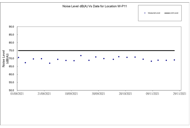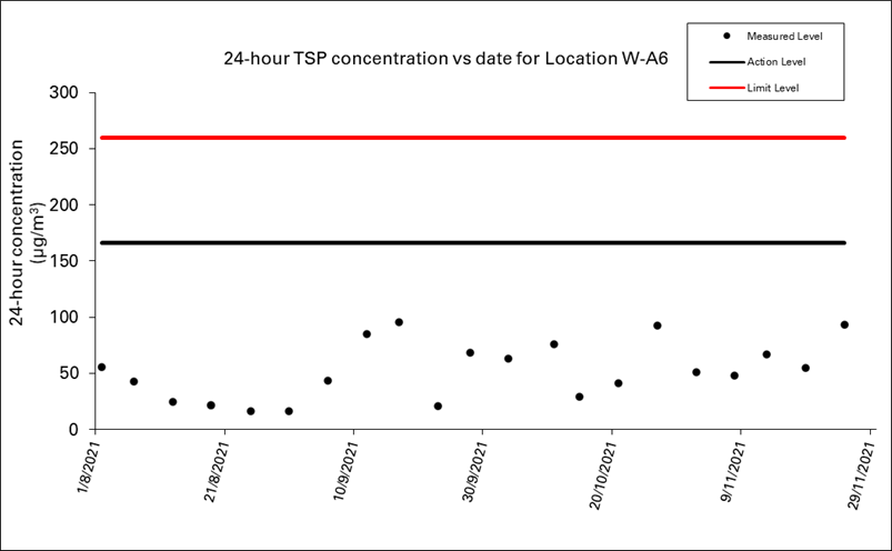 A.7 No exceedance of the Action and Limit Levels of 1-hour TSP, 24-hour TSP and construction noise monitoring was recorded during the reporting month.