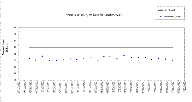 A.7 Four Action Levels of construction noise were triggered during the reporting month as documented complaints related to construction noise from works areas at Zone 3 Noise Enclosure and Zone D3, whereas two complaints were received on 11 November 2022, two complaints were received on 14 November 2022 and 17 November 2022 respectively. No exceedance of Limit Level of construction noise was recorded in the reporting month. No exceedance of the Action and Limit Level of 24-hour TSP and 1-hour TSP was recorded in the reporting month.
