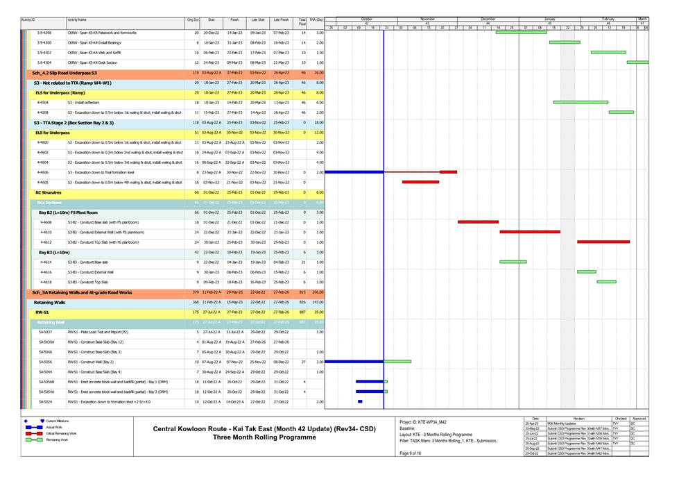 · S1, S3, S4, S9 CKRE, CKRW Bridge construction · Retaining Wall construction at U-Turn & Portion 2B · Excavation work at Portion 3B · Bored pile at U-turn |