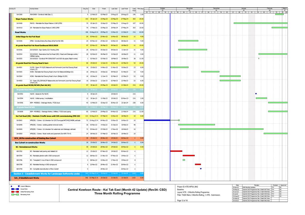 1.5. A summary of major construction activities provided by the Contractor in this reporting period is shown in Table 1.1. The construction programme is presented in Appendix B.