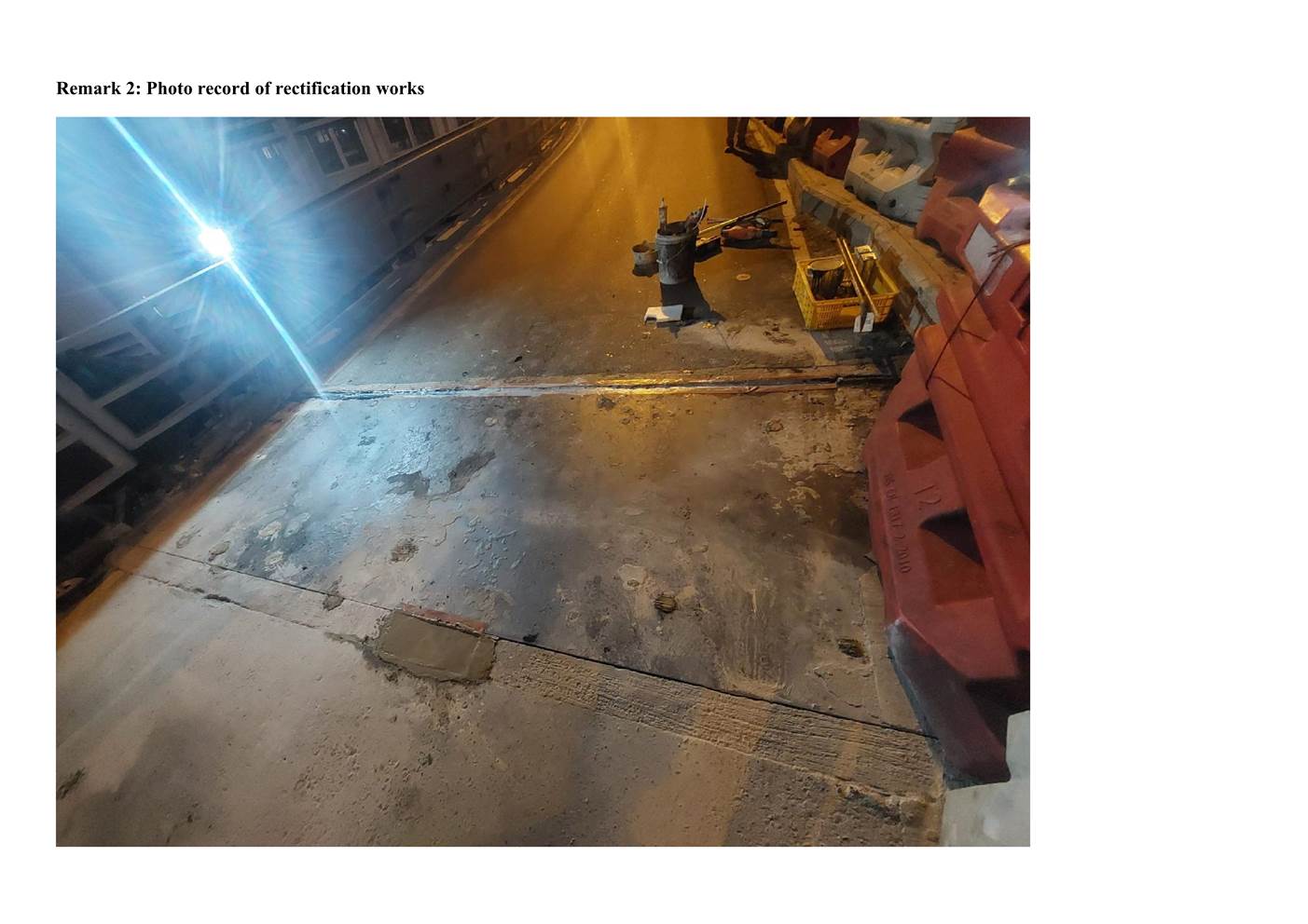 l Construct in-situ reinforced concrete wall (S1 wall) and mass fill in plant room and construction of mass concrete/tunnel drainage & duct to tunnel road level at Zone A l Ceiling slab construction and excavation below ceiling slab at Zone EB1/EB2 and C1. l Complete modification of hanger supports to existing box culvert and construct last pour of roof slab at Zone WB1. l Excavation below ceiling slab and waling beam B5 construction at C2. l DN1800 Drainage (open channel) diversion at Zone C/F l Rock excavation and underpinning wall works at Zone C3 & D1 l Construct ceiling slab at Zone D2/D3 l Install king posts, construct temp. buttress wall & temporary traffic deck at Zone B3. l Construct temporary buttress wall, install king posts, watermain diversion (Lay DN250 DI Pipes to Replace DN450 ACR Pipes), install Jet Grout (Stage 3); 38 nos. Cross wall Cofferdam for CLP Cable Substation at Zone F l Install king posts, temporary traffic deck constriction, temporary supports to DN1000 & 400kV cables, DN1200 & 2xDN600 storm drainage, 132kV CLP cable diversion and watermain diversion (Lay DN250 DI Pipes to Replace DN450 ACR Pipes) at Zone G. l Bridge Works: i.Complete demolition of remaining portion 4 of existing Gascoigne Road Flyover ii.Construct deck segments by FT for deck P5R and P4R including installation of F/T (uphill side) l Continue erection of main beams and secondary tie beams for Noise Enclosure F02 in Zone 3 (night works) l Works at Zone 2 Noise Enclosure are the following: i.Column A – Column erection ii.Column E - Column erection upon the approval/implementation of TTA (KAS193) for the delivery of steel column iii.Columns G - Pile cap construction iv.Columns C – Install steel footing v.Column D - Pending access for trial pit excavation and follow-up ELS/excavation works for steel footing installation. l Noise Enclosure steelworks fabrication at Fabrication Yard in Zhuhai, China l Monitoring of instrumentation for all areas |