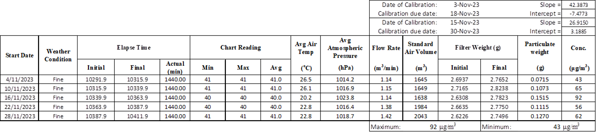 2. No Action/Limit Level exceedance was recorded for all 1-hour TSP and 24-hour TSP monitoring in the reporting month.