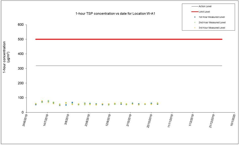 A.10 No exceedance of the Action and Limit Levels of 24-hour TSP and 1-hour TSP monitoring were recorded during the reporting period.