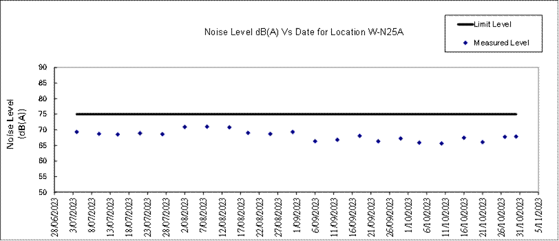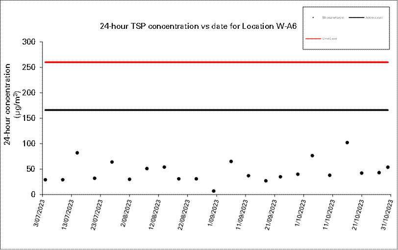 A.7 One Action Level of construction noise was triggered during the reporting month as documented complaints were received. No exceedance of Limit Level of construction noise was recorded in the reporting month. No exceedance of the Action and Limit Level of 24-hour TSP and 1-hour TSP was recorded in the reporting month.