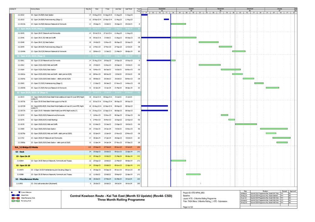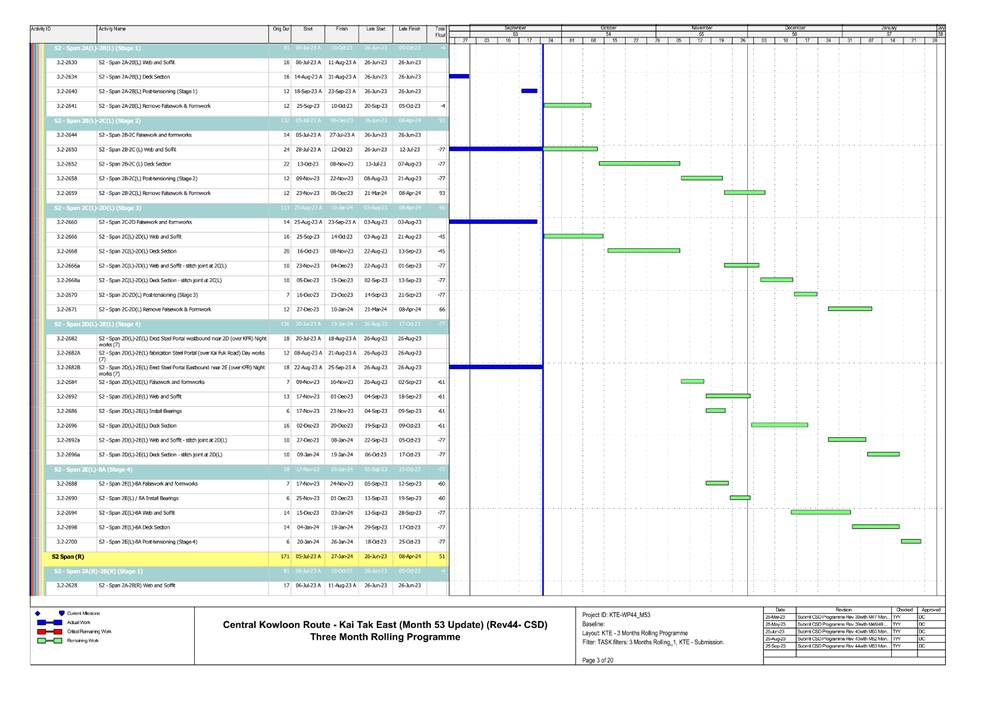 · S1, S3, S4, S9, CKRE, CKRW Bridge Construction · Retaining Wall Construction at U-Turn & Portion 2B · Excavation Work at Portion 4A/4C |
