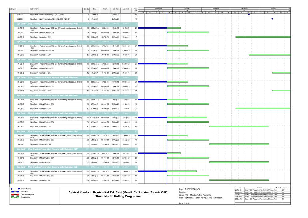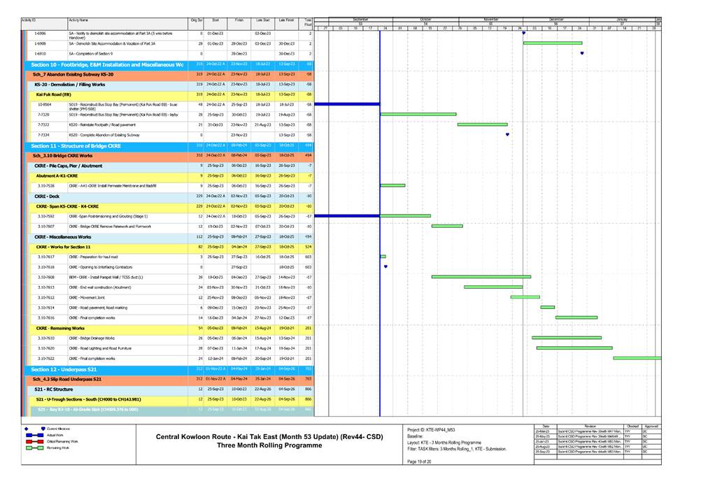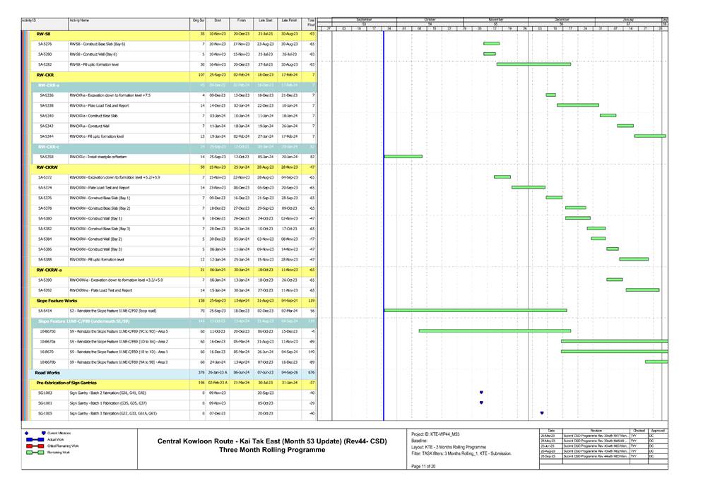 1.5. A summary of major construction activities provided by the Contractor in this reporting period is shown in Table 1.1. The construction programme is presented in Appendix B.