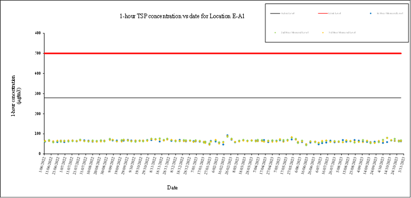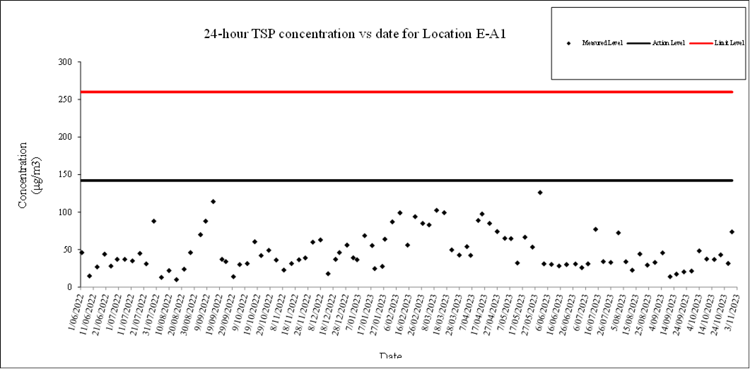 A.7 No exceedance of the Action and Limit Levels of 24-hour TSP and 1-hour TSP monitoring were recorded during the reporting month.