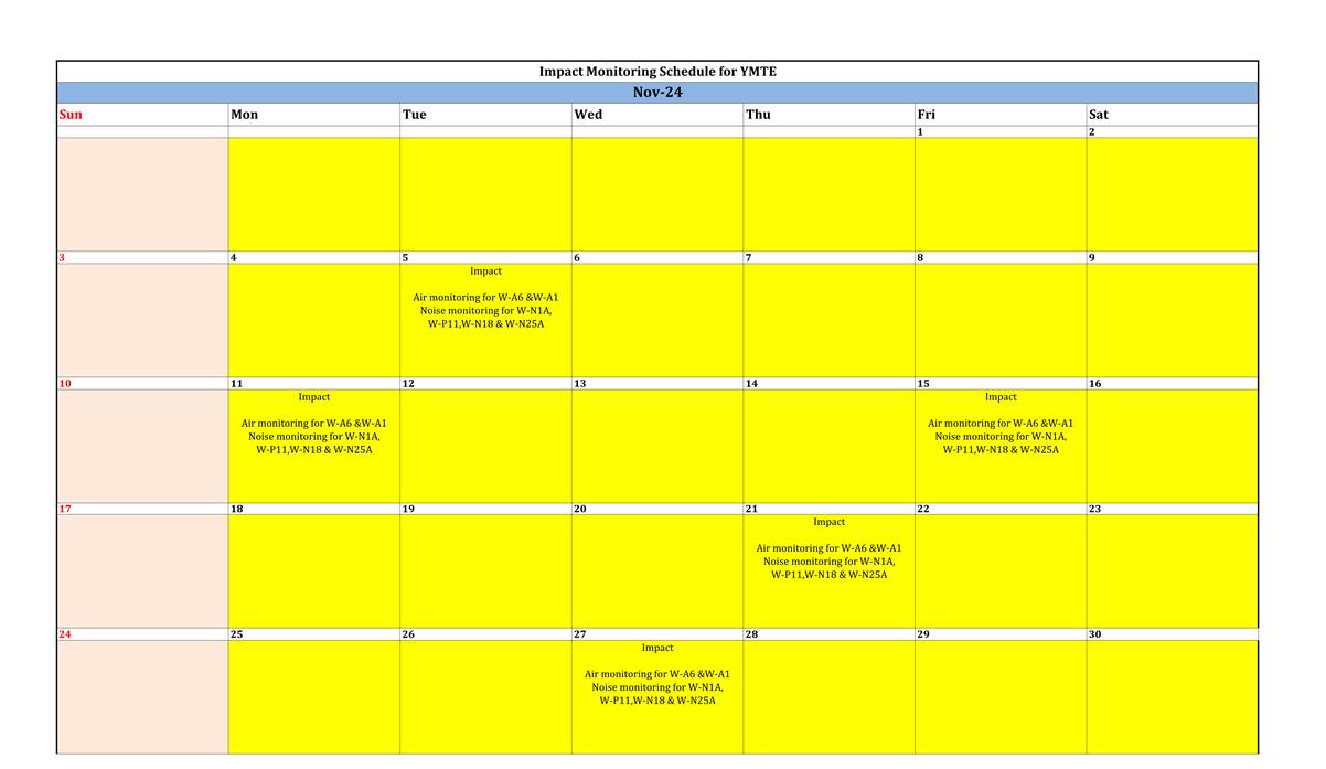 A.7 Five Action Level of construction noise were triggered during the reporting month as documented complaints were received. No exceedance of Limit Level of construction noise was recorded in the reporting month. No exceedance of the Action and Limit Level of 24-hour TSP and 1-hour TSP was recorded in the reporting month.