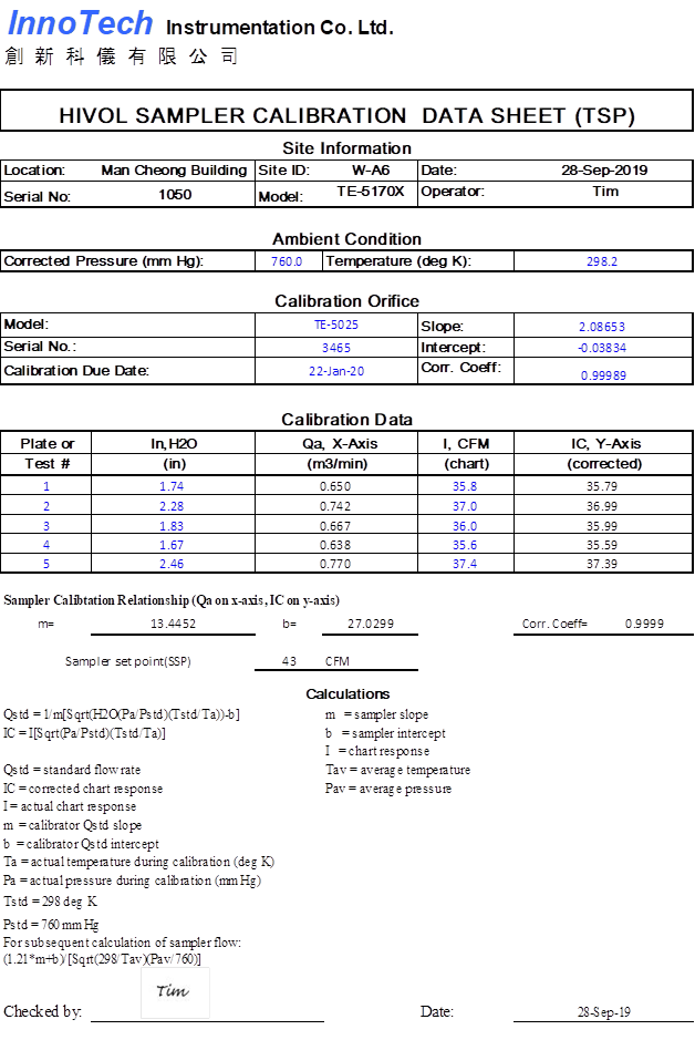 H. Calibration Certificate (Air Monitoring)