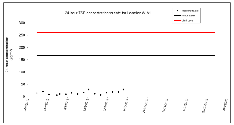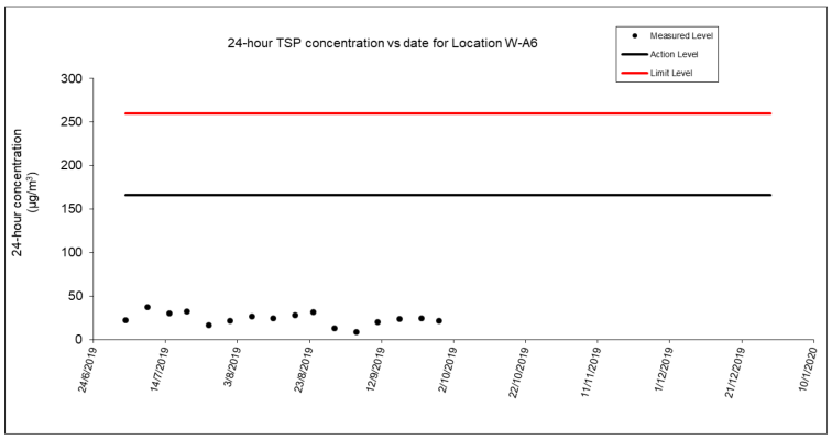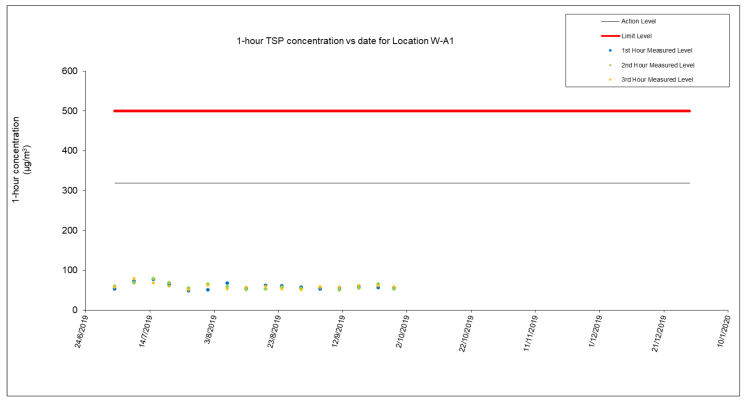 A.9 No exceedance of the Action and Limit Levels of 24-hour TSP, 1-hour TSP and construction noise monitoring were recorded during the reporting month.