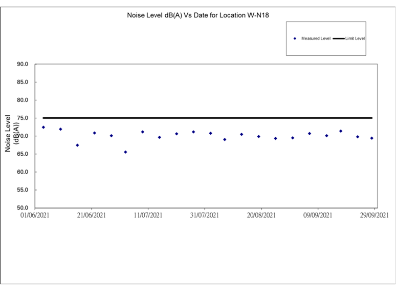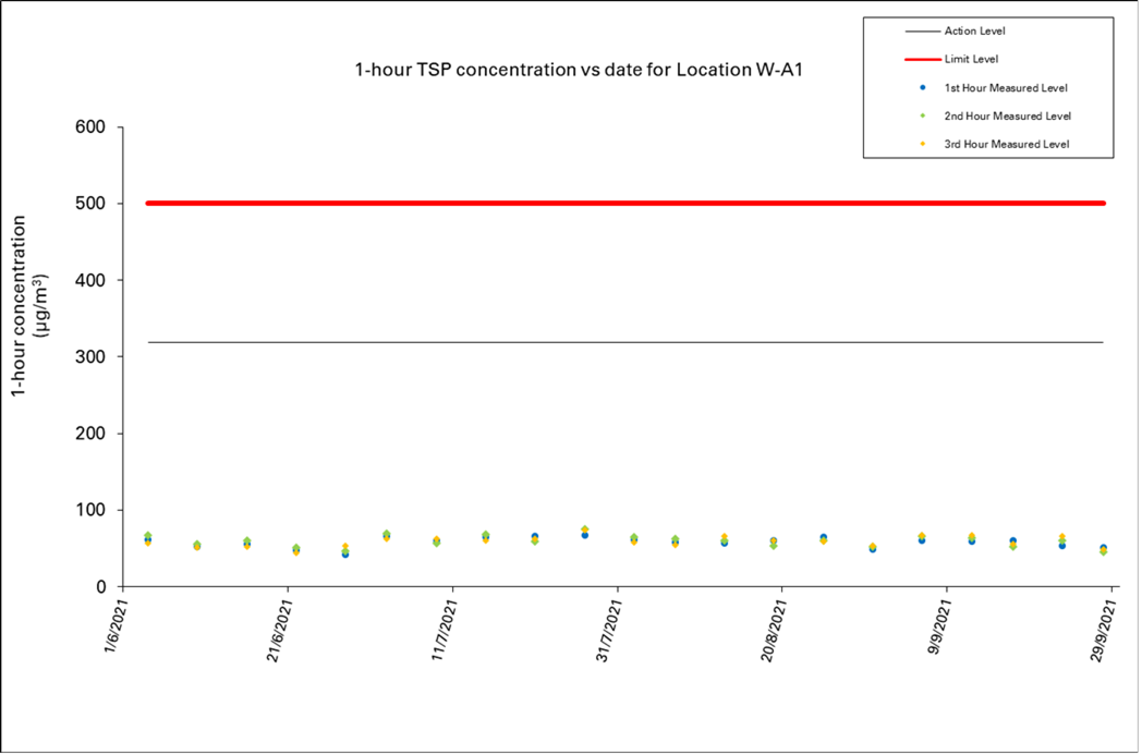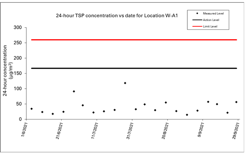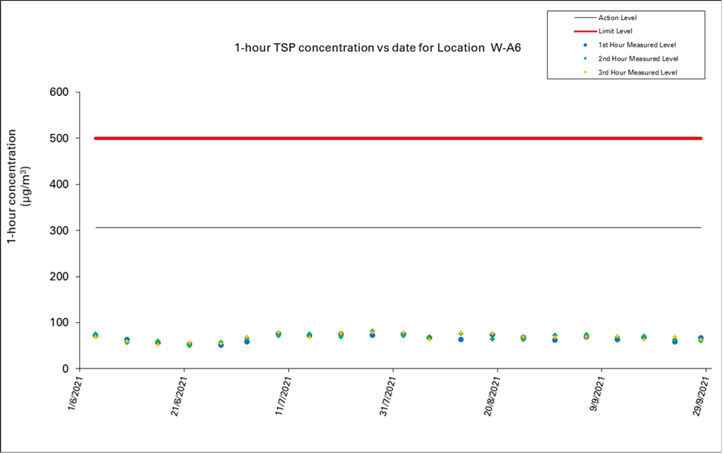 A.7 No exceedance of the Action and Limit Levels of 1-hour TSP, 24-hour TSP and construction noise monitoring was recorded during the reporting month.