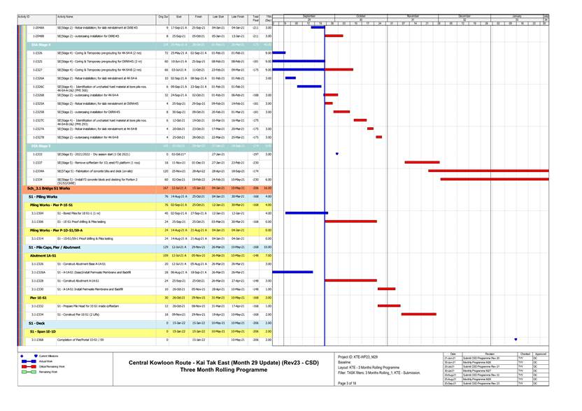 · Bored Pile at Temporary Platform & Kai Cheung U Turn. · Pile Cap Construction at Portion 1A, Kai Cheung Loop Road & Portion 2B · RC structure for Adit at Area Part 1B. · RC structure for Underpass S3 & S21 at Area Part 3A · Construction of Temporary Platform at Kai Tak Nallah · Retaining Wall Construction at Portion 2B · Sheet piling Work at Area Part 1A & 3B · Central Divider Removal at Kai Fuk Road. |