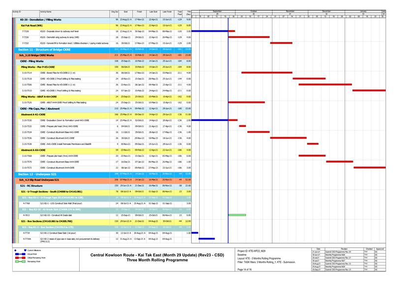 1.4. A summary of major construction activities provided by the Contractor in this reporting period is shown in Table 1.1. The construction programme is presented in Appendix B.