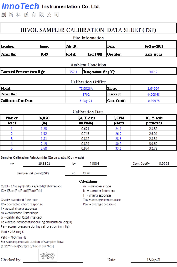 H. Calibration Certificate (Air Monitoring)