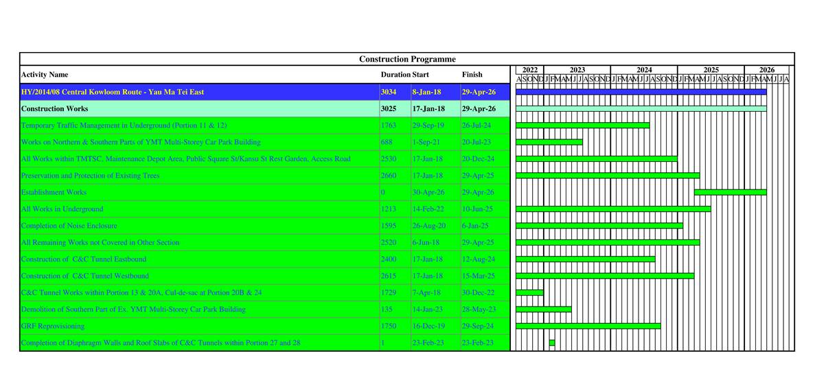 v. Construction of civil provisions and coordination with the contractor of Central Kowloon Route - Tunnel Electrical & Mechanical contract