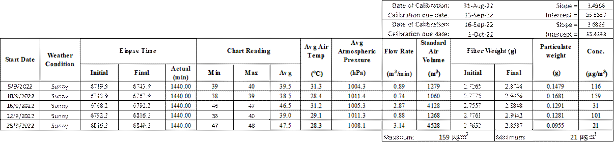 A.5 Joint weekly site inspections were conducted by representatives of Environmental Team (ET), Contractor and Engineer on 1, 8, 16, 22 and 29 September 2022. One joint site inspection with IEC was also undertaken on 16 September 2022. Details of the audit findings and implementation status are presented in Section 5.