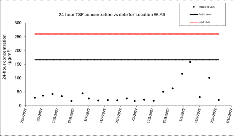 A.7 No exceedance of the Action and Limit Level of construction noise, 24-hour TSP and 1-hour TSP was recorded in the reporting month.