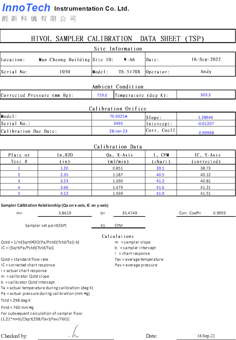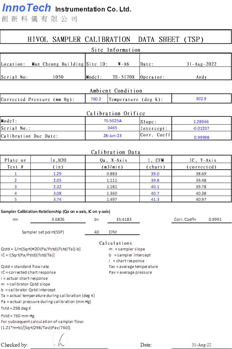 H. Calibration Certificate (Air Monitoring)