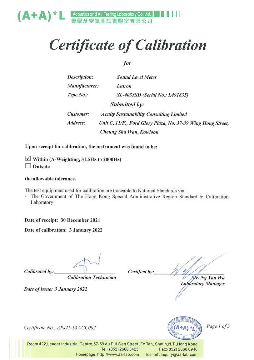 J. The Certification of Laboratory with HOKLAS Accredited Analytical Tests