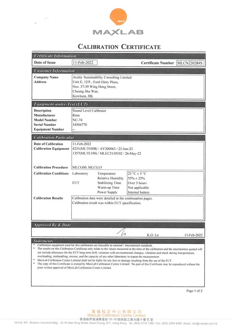 I. Calibration Certificate (Noise)