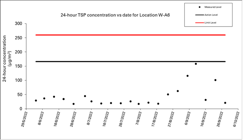 8.2 No Action/Limit Level exceedance was recorded for all 1-hour and 24-hour TSP monitoring in the reporting month.