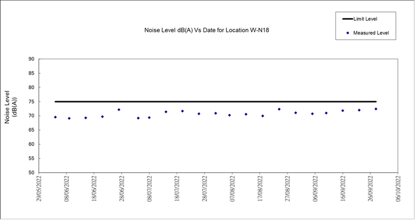 8.3 No Action/Limit Level exceedance was recorded for all noise monitoring in the reporting month.