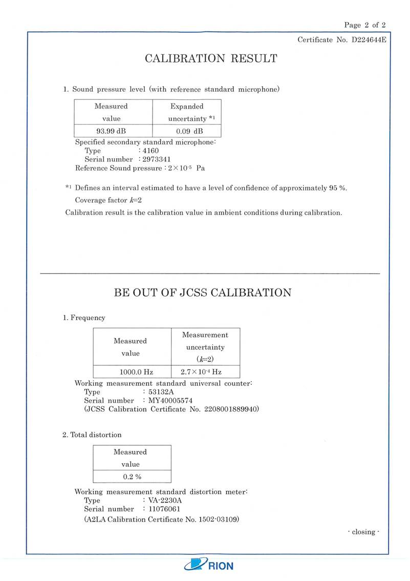 I. Calibration Certificate (Noise)