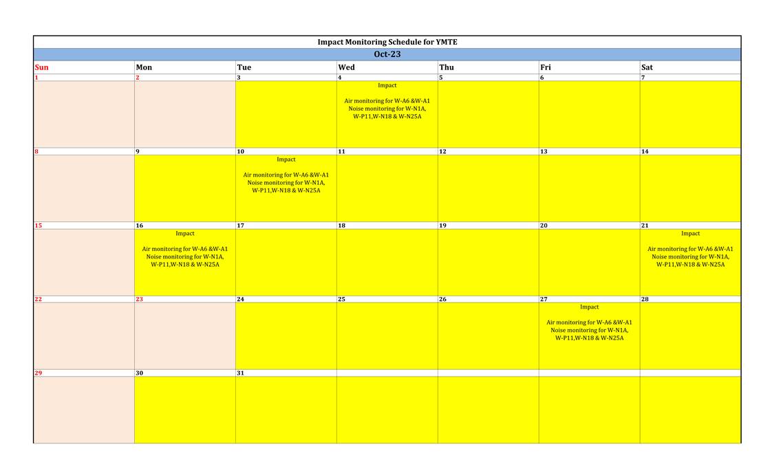 A.11 A summary of the construction activities provided by Main Contractor in the next reporting month is listed below: