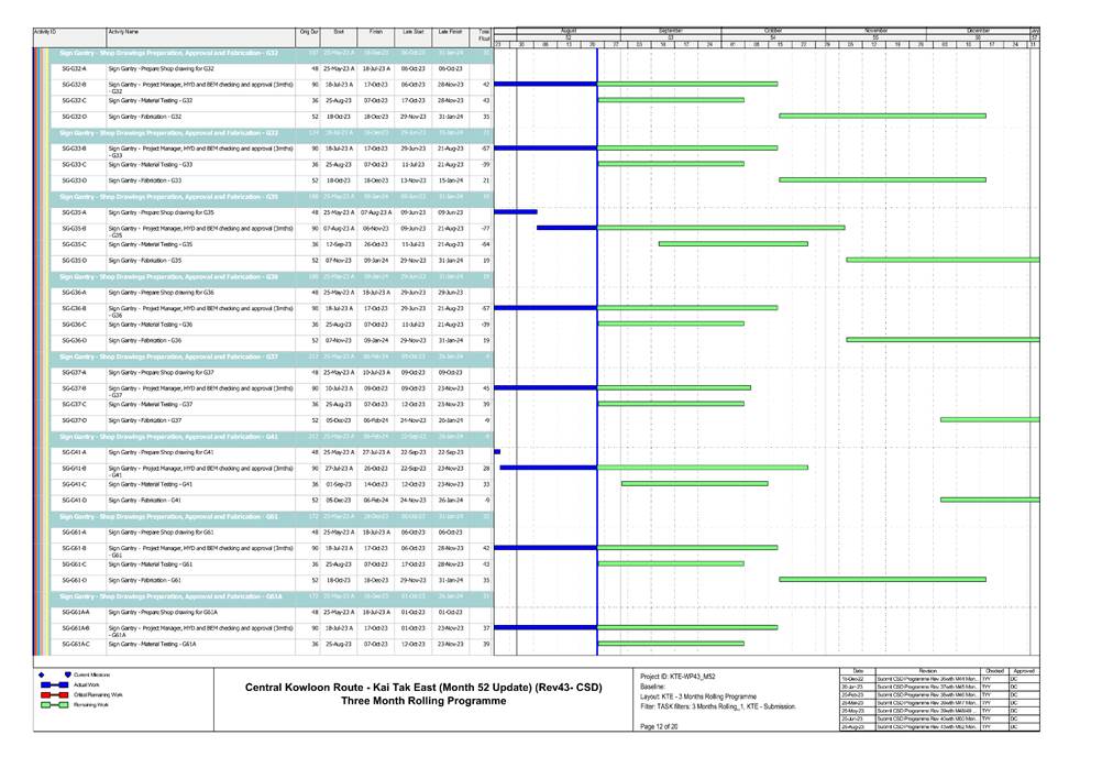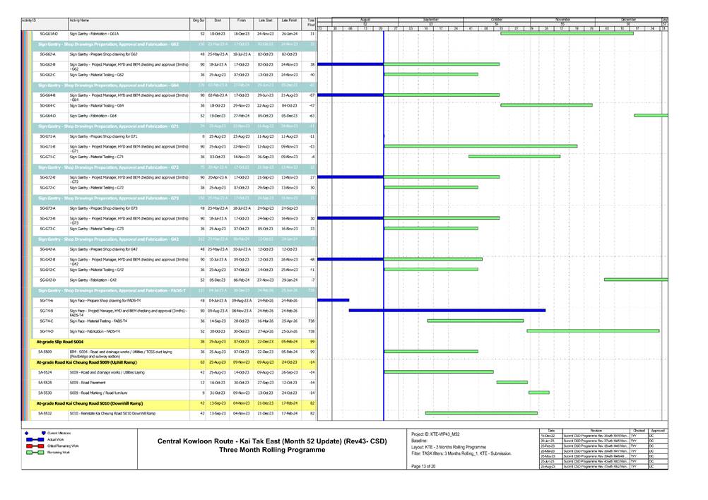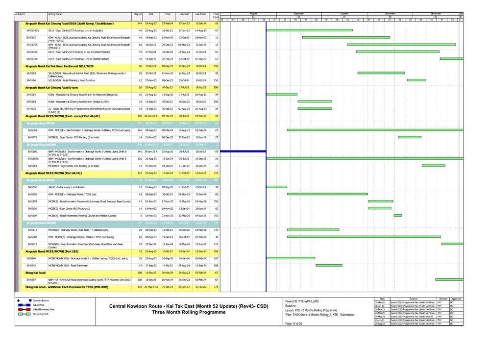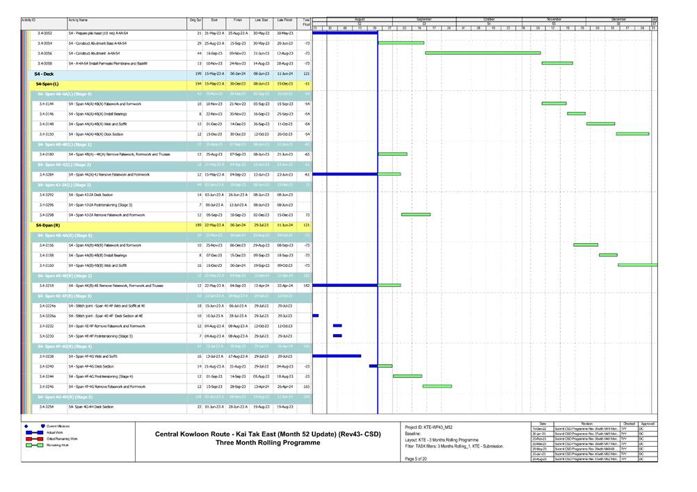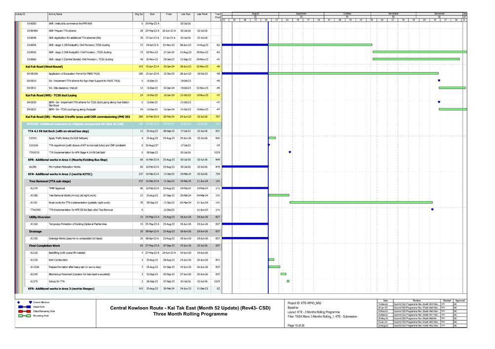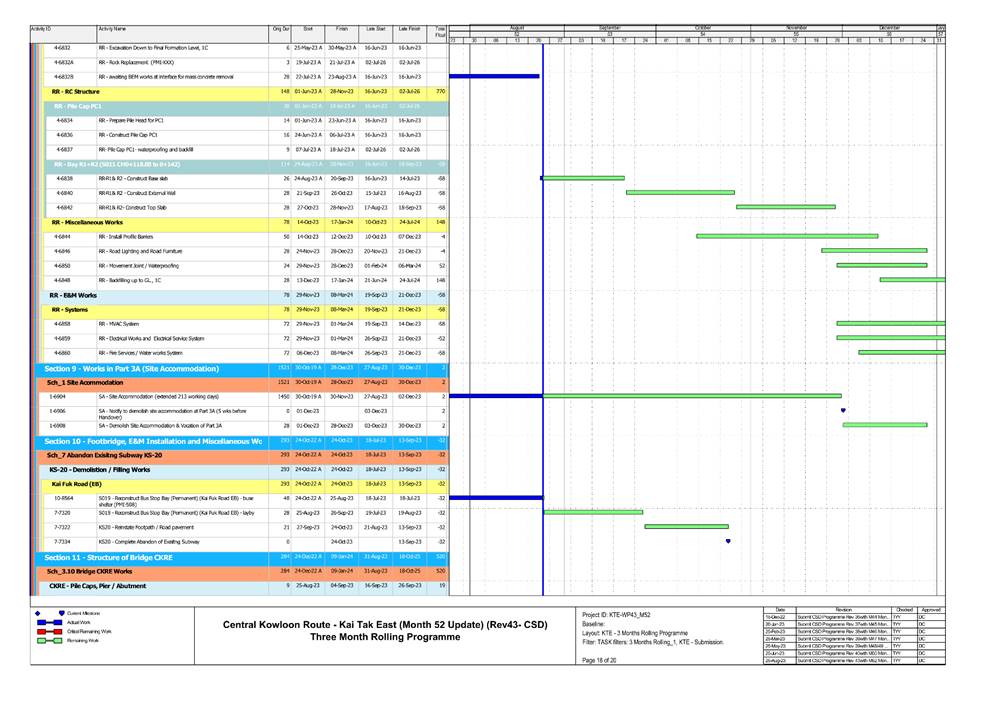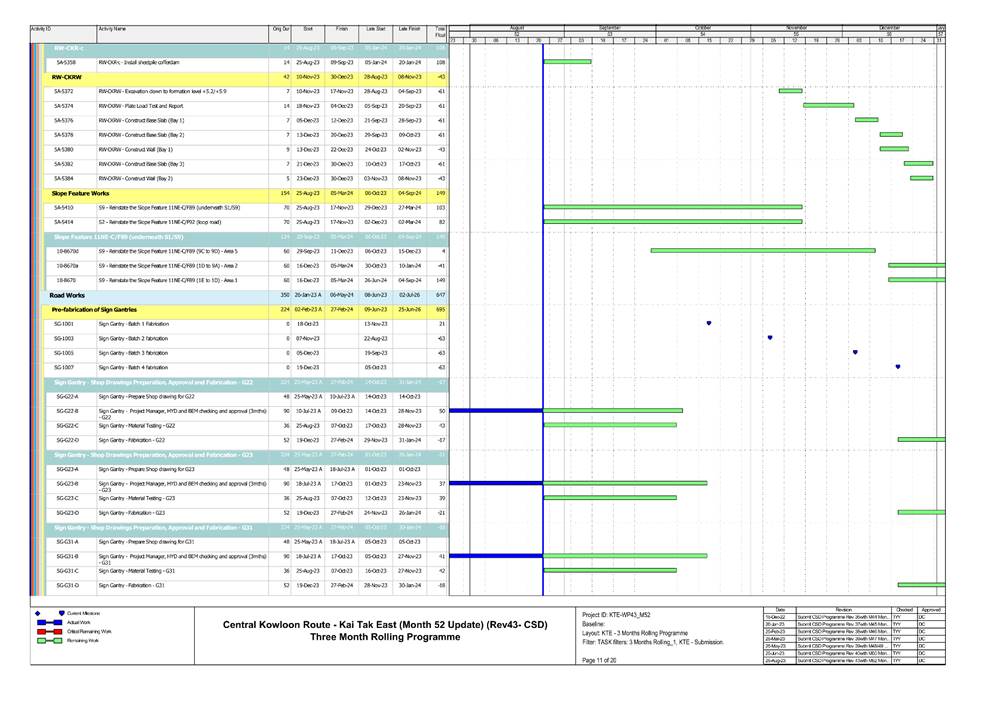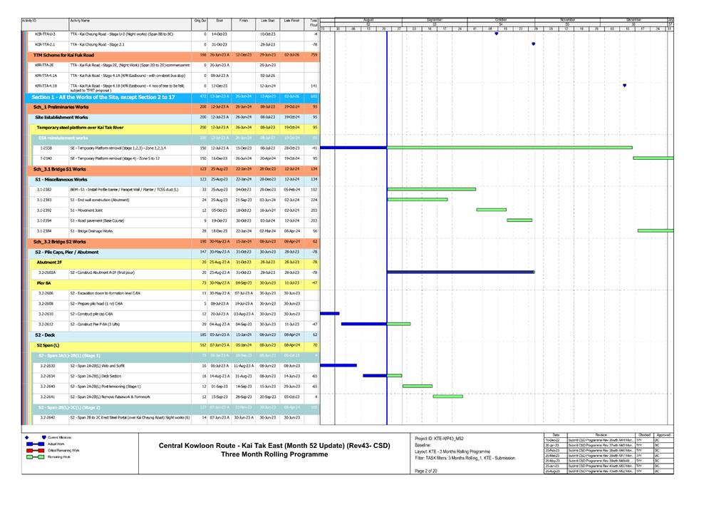 1.5. A summary of major construction activities provided by the Contractor in this reporting period is shown in Table 1.1. The construction programme is presented in Appendix B.