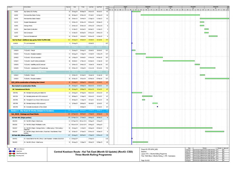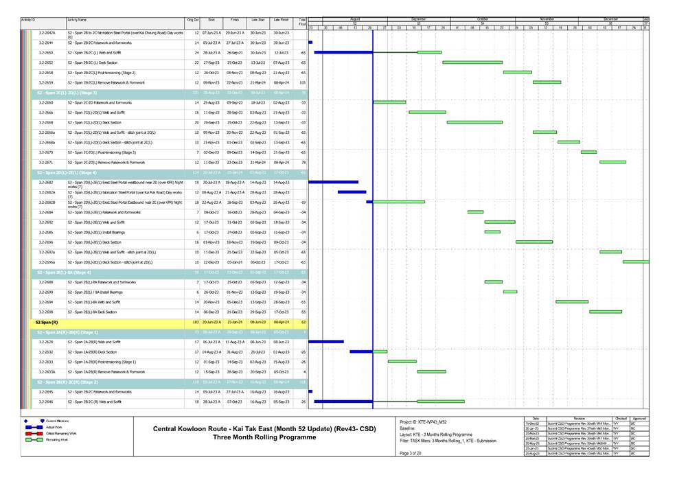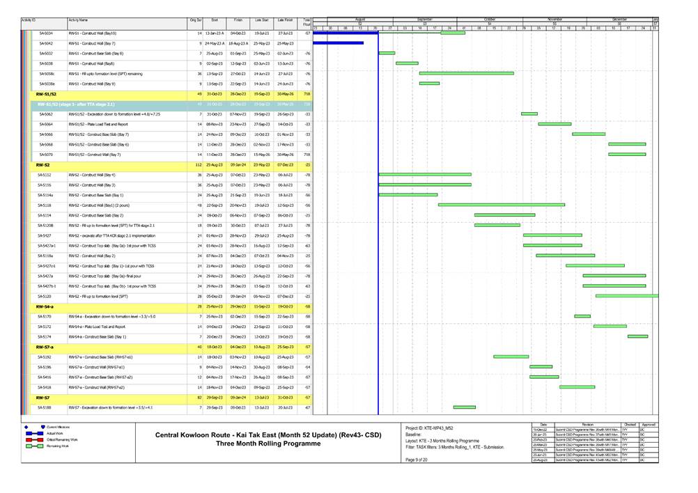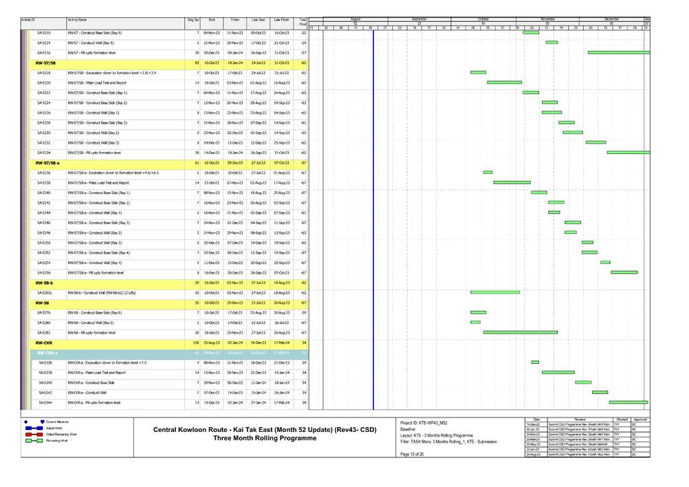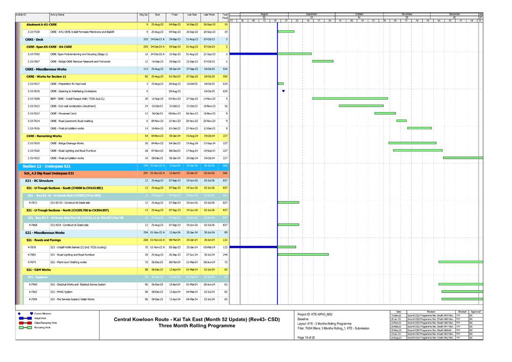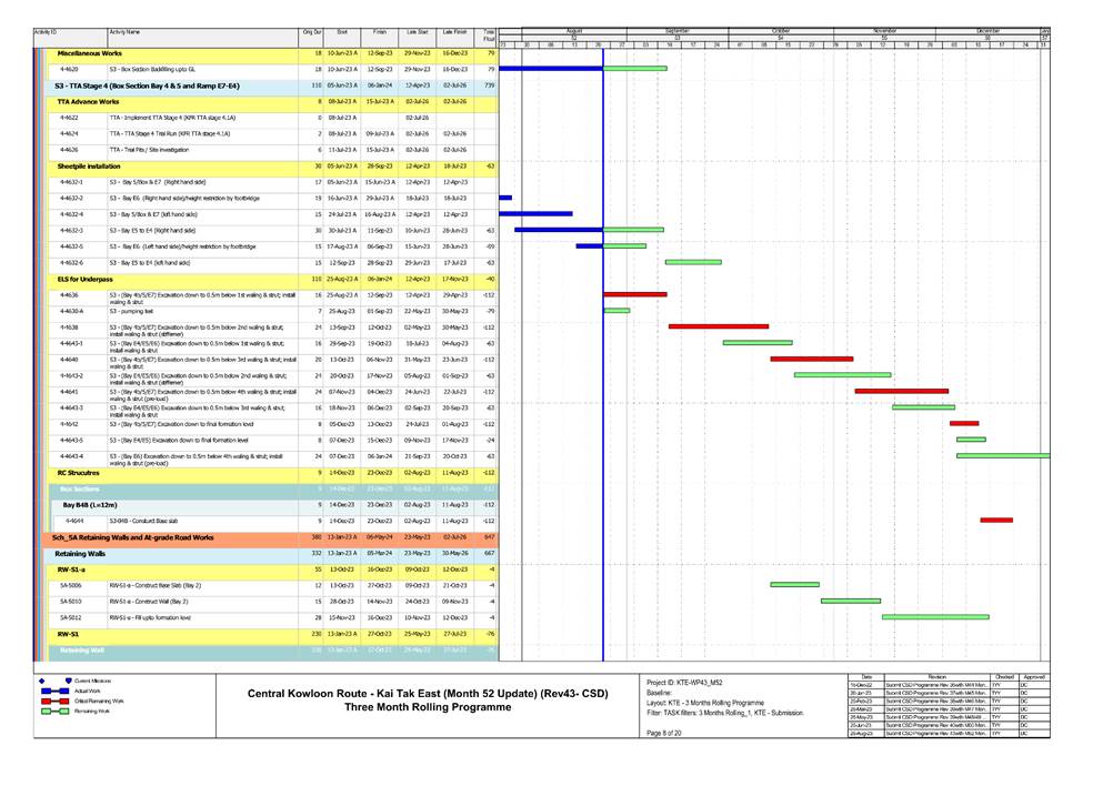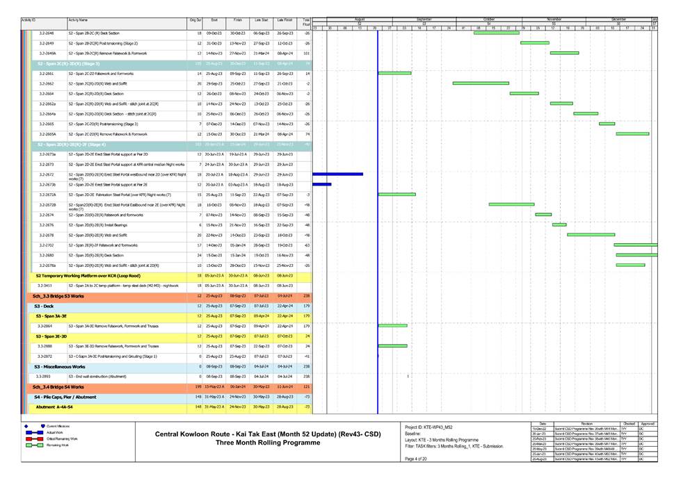 · S1, S3, S4, S9, CKRE, CKRW Bridge Construction · Retaining Wall Construction at U-Turn & Portion 2B · Excavation Work at Portion 4A/4C |
