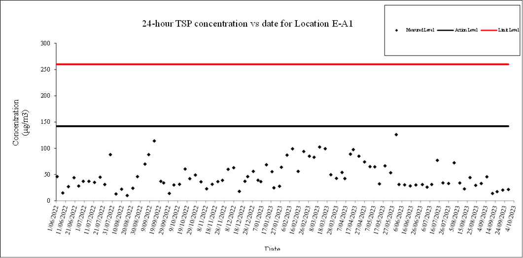 A.7 No exceedance of the Action and Limit Levels of 24-hour TSP and 1-hour TSP monitoring were recorded during the reporting month.