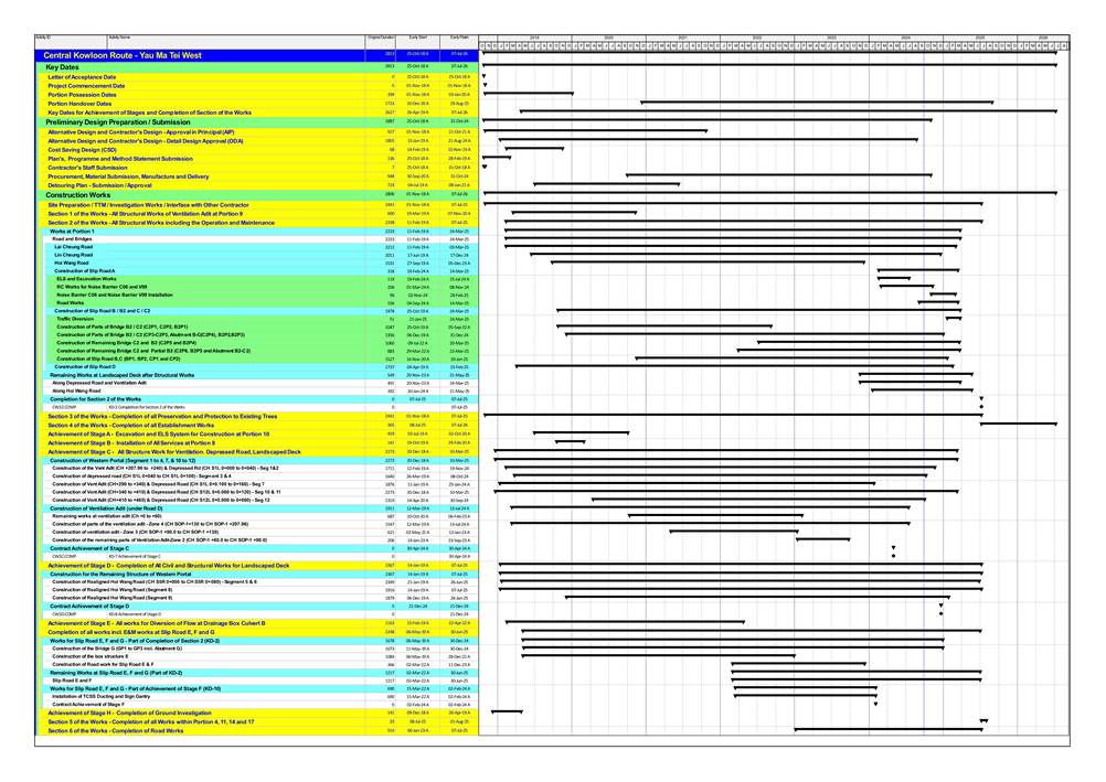 · Noise Barrier C02, C03 & S01 (along Lin Cheung Road) at Portion 1E · Slip Road A (Reinforced Concrete works for Noise Barrier C06 & V09) at Portion 1E · Parapet Wall at Bridge B, B2, C and C2 at Portion 1B · Noise Barrier at Slip Road D (C04 & V02) in Portion 1B · Slip Road E in Portion 1A · Slip Road E and F Widening Works (Variation Order) · Recovery Area – Roadworks at Portion 1B · Roadworks at Segment 1 to 3 at Portion 1B · Fire Separation Wall FSW-1 at Segment 1 & 2 in Portion 1B · Fire Separation Wall FSW-3 underneath Bridge C2 in Portion 1B · Abutment Wall at Emergency Access Road in Portion 1D · Façade Wall at Segment 10 to 12 in Portion 1F · Reinforced Concrete Works for Escape Route 1 and 2 in Portion 1F · MJ and Waterproofing Installation at Roof Deck of Segment 1-4, 7 and 10-12 at Portion 1B and 1F · Upstand Wall and Column construction at Segment 5 (West Side) in Portion 1D · Landscaped Deck construction at Segment 5A in Portion 1D · Landscaped Deck construction at Segment 5B in Portion 1D · Segment 8 & 9 Pile Cap, Upstand Wall & Column (West Side) including Hoi Wang Road Plant Room at Portion 1D · Landscaped Deck construction at Segment 8B & 9 in Portion 1D |