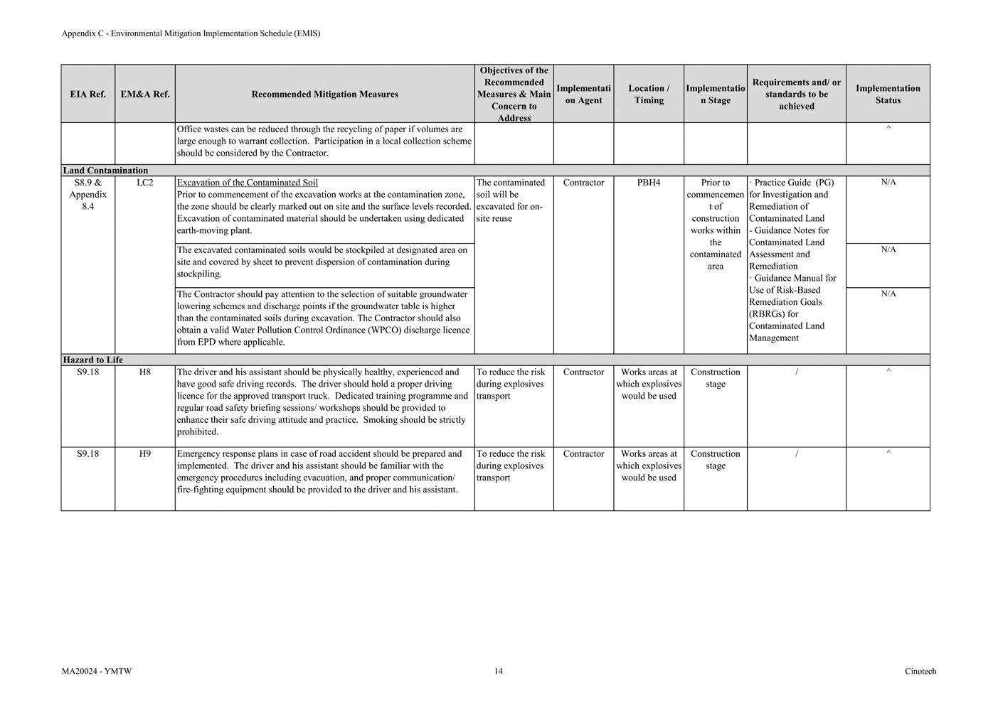 Appendix C Environmental Mitigation Implementation Schedule (EMIS)