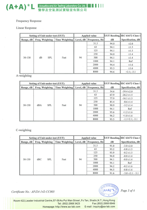 I.       Calibration Certificate (Noise)