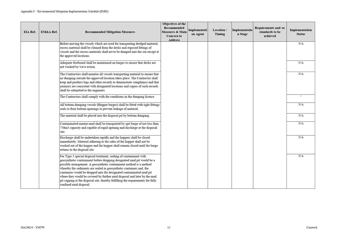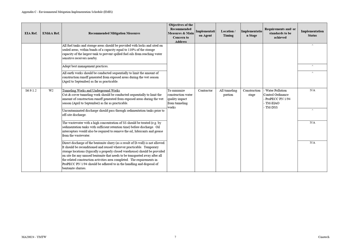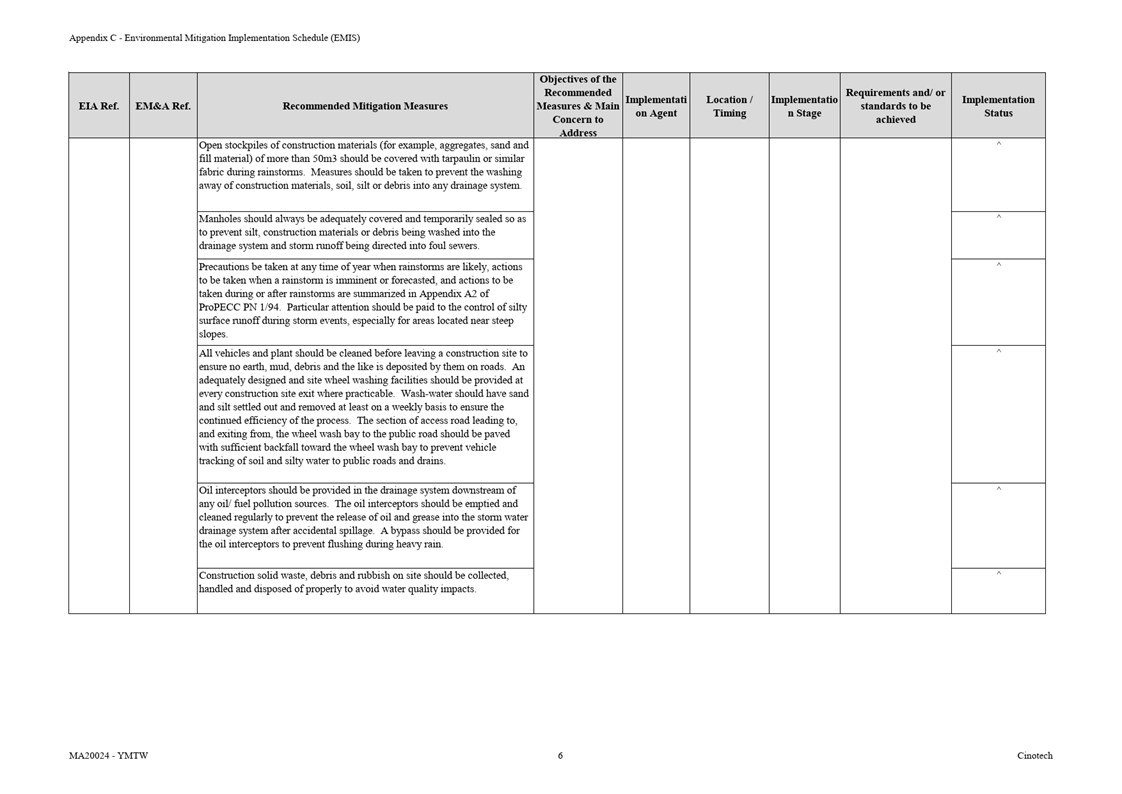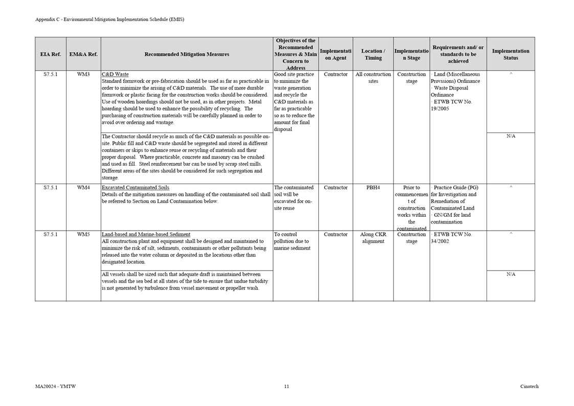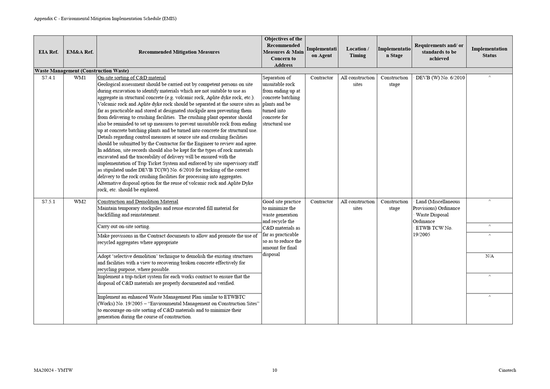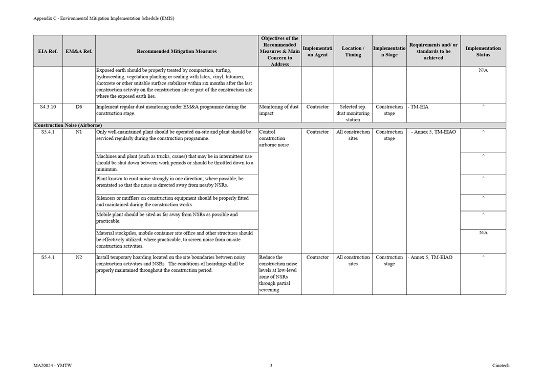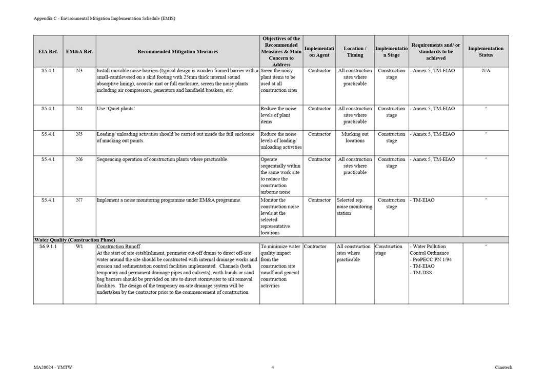 F.     Environmental Mitigation Implementation Schedule (EMIS)