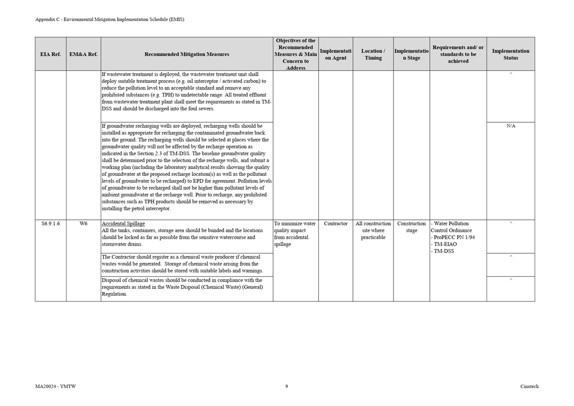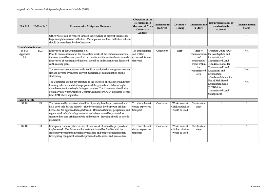 ·     Details of the mitigation measures on handling of the contaminated soil shall be referred to Section on Land Contamination below.