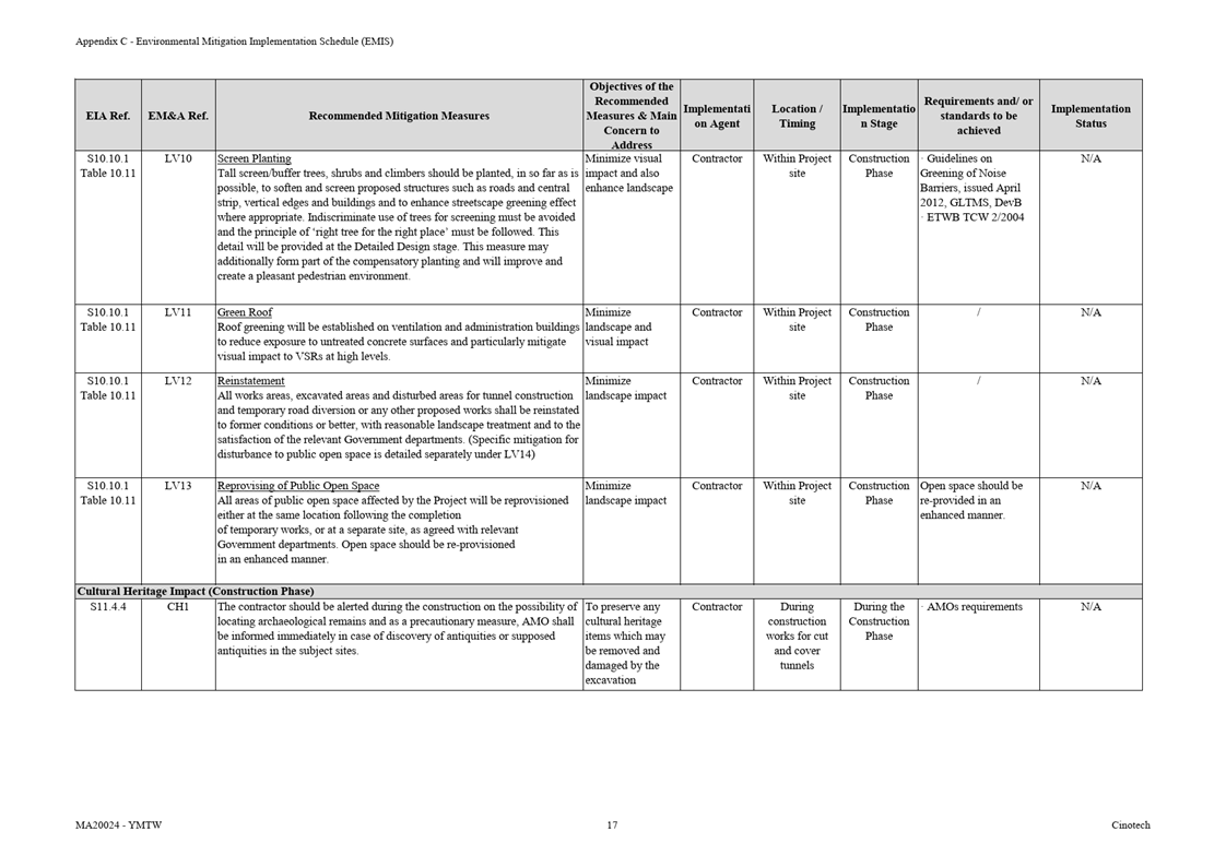 A.4            Bi-weekly inspection of the implementation of landscape and visual mitigation measures was conducted on 11 and 24 December 2025. Details of the audit findings and implementation status are presented in Section 5.